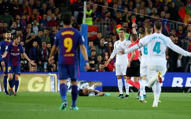 Như thường lệ, El Clasico luôn là là một dịp bận rộn với các trọng tài, và trọng tài chính Alejandro Jose Hernandez Hernandez lần này cũng không ngoại lệ. Tám thẻ vàng, một thẻ đỏ và gần 30 tình huống phạm lỗi đủ để cho thấy sự quyết liệt của trận đấu. Đến một cầu thủ vốn rất ít phạm lỗi như Messi cũng có một tình huống vào bóng nguy hiểm khiến Ramos nằm sân đau đớn và phải nhận thẻ vàng. Căng thẳng lên đến đỉnh điểm trong những phút cuối hiệp một khi Sergi Roberto nhận thẻ đỏ rời sân vì vung cùi chỏ vào mặt Marcelo.