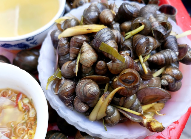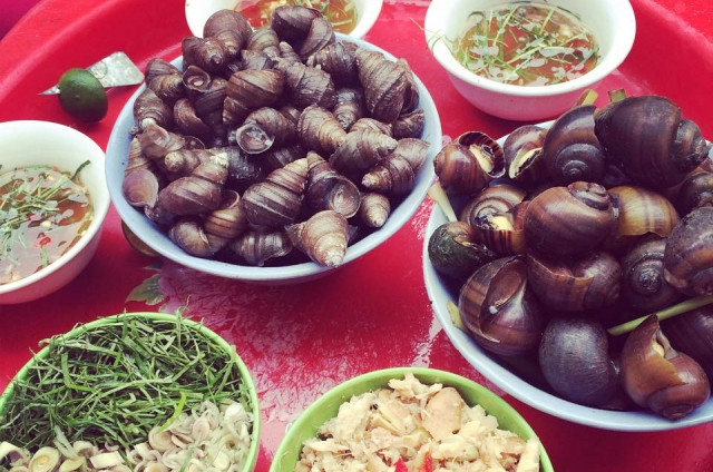Một khay chỉ có một đĩa bún chấm cùng nước mắm rồi khêu cùng miếng ốc ăn kèm thôi mà khiến ai ai cũng thích mê. Vừa ăn ốc vừa húp nước chấm xì xụp, đặc biệt có vị cay nồng, mất đi vị nhạt và tanh của ốc nên khá ngon. Đặc biệt, sau khi ăn xong, ở bất kỳ quán ốc nào, bạn cũng đều nhìn thấy chiếc xô nhựa, bên trong có vỏ bưởi hoặc vỏ chanh để rửa tay, át đi mùi tanh của ốc, cũng thú vị lắm.