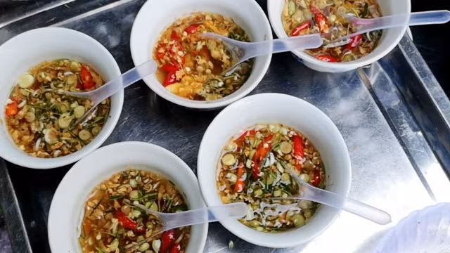 Ở đây, cũng nổi tiếng với món bún “chấm mắm ốc” mà ai đến cũng phải thưởng thức một lần, thậm chí bị quyến rũ bởi hương vị độc đáo ấy, có khách ăn đến hai bát bún và xin thêm nước chấm ốc. Tùy từng phong cách ăn của từng người, bạn có thể chấm bún trực tiếp, hoặc pha chế từ nước ốc với nước chấm, sau đó khêu ốc bỏ vào bát và ăn kèm bún, thêm kiểu ăn mới nhưng vẫn bảo đảm hương vị của bát nước chấm chua ngọt, thơm mùi gừng, sả, ớt và xắt ít lá chanh và ốc béo ngậy.