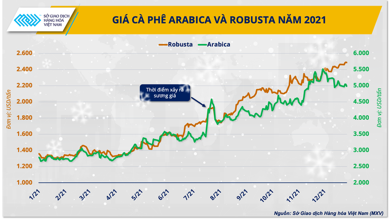 Hoạt động thu hoạch bị gián đoạn, nhiều cây cà-phê bị chết lạnh, dẫn đến sản lượng cà-phê giảm gần 30% so vụ trước. Điều này gây ra tâm lý lo ngại thiếu hụt nguồn cung trên thị trường, giúp giá thiết lập mức tăng hằng tháng mạnh nhất kể từ năm 2014. Trong tháng 7/2021, giá cà-phê Arabica đã tăng 40%, kéo theo giá cà phê Robusta tăng 15%.