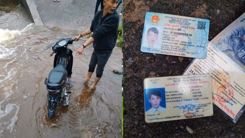 Lực lượng tiến hành đưa chiếc xe lên trên bờ, mở cốp xe thấy bên trong có 2 điện thoại và 1 ví da màu đen; trong ví có thẻ căn cước công dân, giấy phép lái xe, giấy chứng nhận đăng ký xe đều mang tên Liều A Vư, sinh năm 1998, nơi thường trú tại bản Can Tỷ 1, xã Ma Quai, huyện Sìn Hồ.