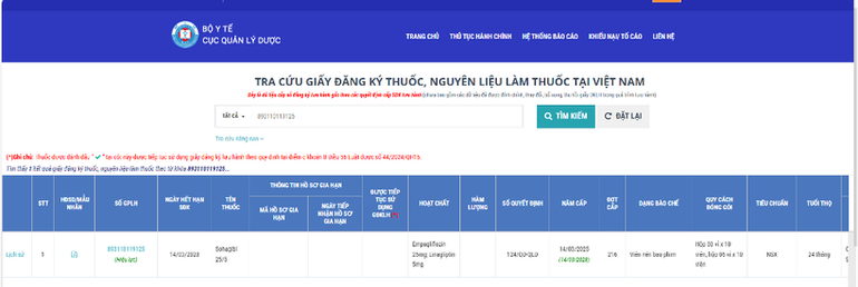 Nếu kết quả tra cứu cho kết quả hiển thị các thông tin nêu trên, thì loại thuốc tra cứu đã được cấp phép lưu hành. Ngược lại, kết quả tra cứu không hiển thị thông tin đã nêu thì có thể xác định loại thuốc tra cứu không được cấp đăng ký lưu hành, đây có thể là thuốc giả.
