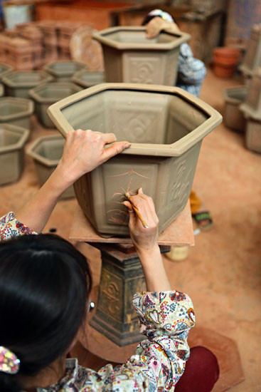 Từ nguyên liệu đất làng, những sản phẩm gốm sứ được hoàn thành qua bàn tay khéo léo của các nghệ nhân.