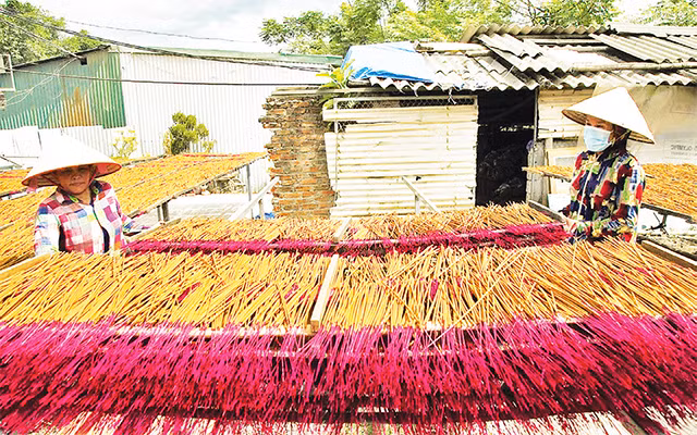 Làng nghề truyền thống tăm hương Quảng Phú Cầu (huyện Ứng Hòa) nằm bên quốc lộ 21B, cách trung tâm Hà Nội chừng 35 km. Đường thôn Cầu Bầu, thôn Phú Lương Thượng, thôn Đạo Tú… đâu đâu cũng đỏ rực mầu của chân hương đang phơi nắng và hình ảnh những người dân đang hăng say làm việc. Từ chỗ chỉ là nghề phụ, nghề làm tăm hương ngày càng phát triển, thu hút 70% số hộ dân ở địa phương tham gia, đem lại nguồn thu nhập chính cho gần 3.000 hộ dân.