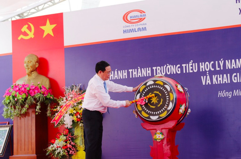 Dịp này, đồng chí Vương Đình Huệ cùng lãnh đạo UBND tỉnh Thái Bình, UBND huyện Hưng Hà cắt băng khánh thành trường Tiểu học Lý Nam Đế. Đây là ngôi trường được xây dựng mới, quy mô ba tầng gồm 25 phòng (trong đó có 18 phòng học khang trang, hiện đại). Dự án này là món quà ý nghĩa của Công ty cổ phần Him Lam, Ngân hàng Bưu điện Liên Việt tặng địa phương với tổng kinh phí xây dựng khoảng 33 tỷ đồng.