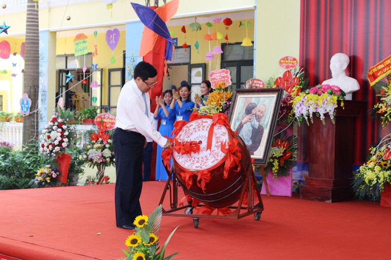 Trong không khí phấn khởi, nô nức của thầy và trò nhà trường, Phó Thủ tướng Phạm Bình Minh đã đánh trống khai giảng, tặng Cờ thi đua của Chính phủ, tặng hoa và quà cho Trường Tiểu học thị trấn Thắng.