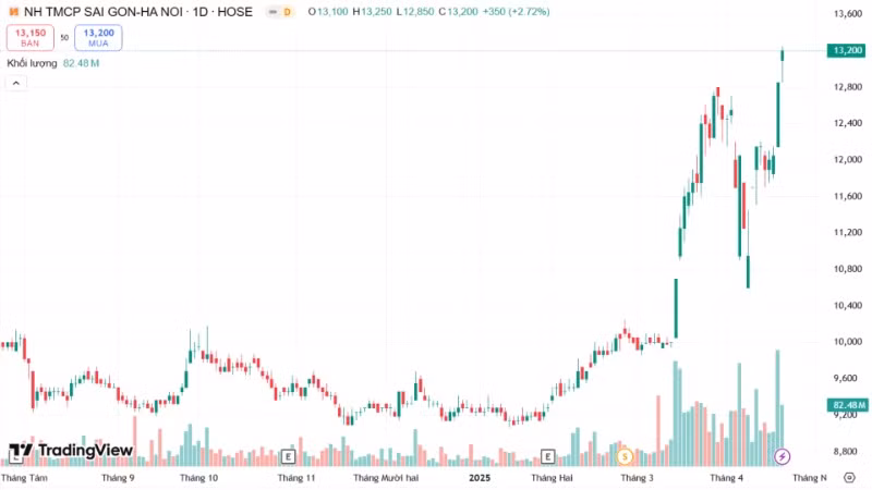 Từ đầu năm 2025 đến nay, giá cổ phiếu SHB cũng đang ghi nhận tốc độ tăng trưởng vượt trội so với cổ phiếu cùng ngành cũng như thị trường chung, với mức tăng gần 30%, cao nhất trong nhóm ngân hàng cùng quy mô. Tỷ suất này cũng cao vượt trội nếu so với hiệu suất của VN-Index cùng giai đoạn là âm 3%. Tính trong 1 tháng gần nhất, cổ phiếu SHB đã tăng gần 20%.