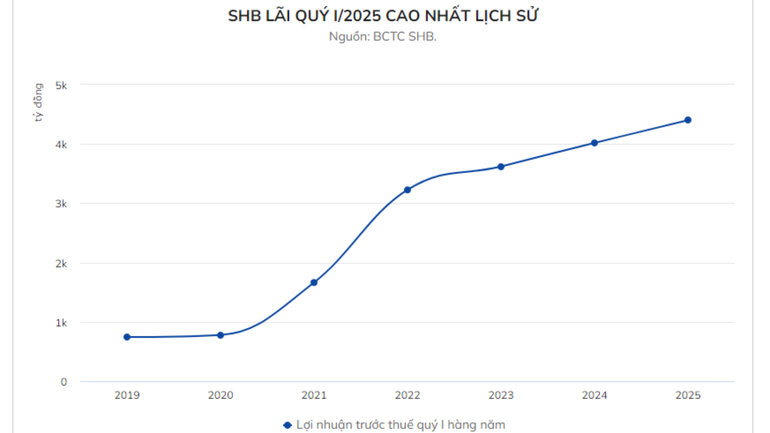 Kết thúc quý I, lợi nhuận trước thuế của SHB đạt gần 4.400 tỷ đồng, đạt 30% kế hoạch cả năm 2025. Bước tăng trưởng này cho thấy năng lực nội tại vững chắc của SHB, và nền tảng thuận lợi cho các mục tiêu tăng trưởng bứt phá trong năm 2025. Trong nhiều năm, SHB thuộc TOP 5 ngân hàng đóng góp ngân sách lớn nhất.