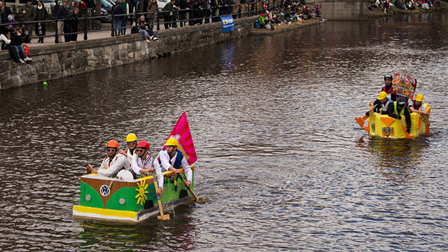 Cuộc đua thuyền độc đáo dịp lễ hội Valborg ở TP Uppsala. Ảnh: WORLD NEWS