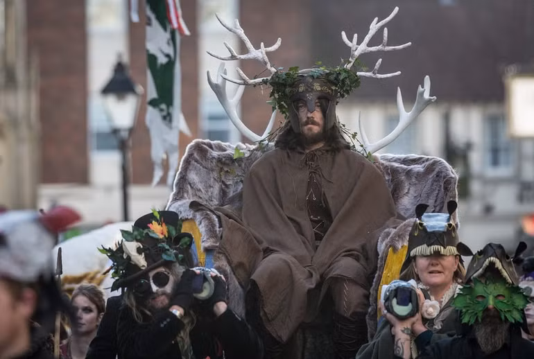 Quốc vương của mùa đông được diễu hành qua Glastonbury.