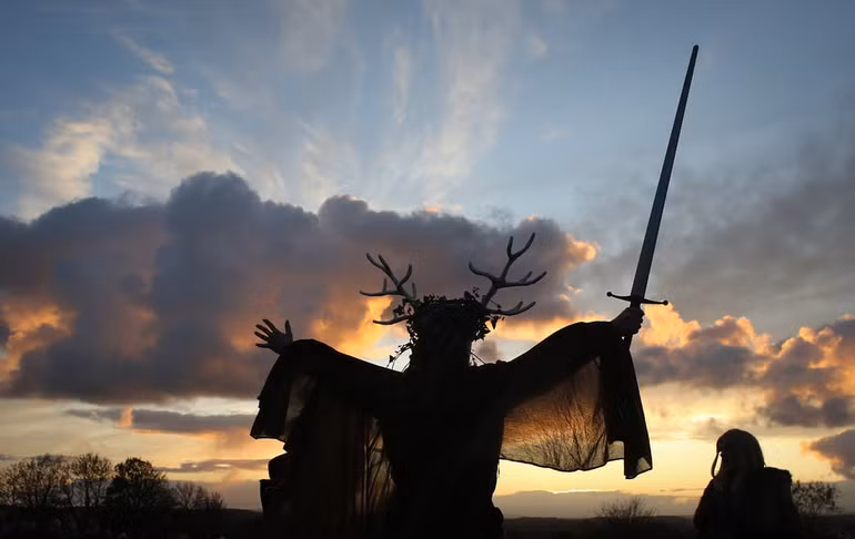 Nhà vua mùa đông với thanh kiếm lửa cử hành Samhain.