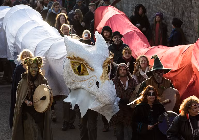 Rồng Glastonbury được diễu hành qua thị trấn trong dịp lễ hội truyền thống Samhain.