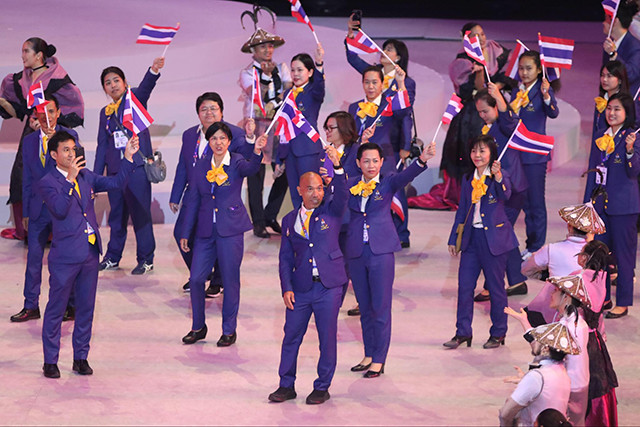 Sau khi lần lượt các đoàn Indonesia, Lào, Singapore, Malaysia diễu hành, tới lượt đoàn thể thao Thái Lan – một trong những cường quốc thể thao của khu vực. Đoàn Thái Lan dự giải năm nay với số lượng vô cùng đông đảo, lên tới 1.473 thành viên.