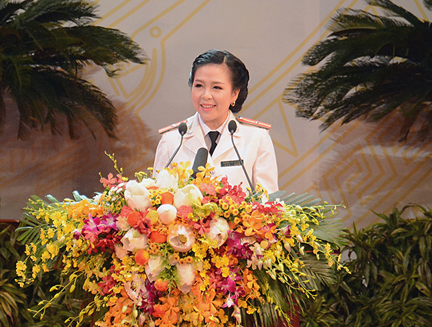 Thay mặt tuổi trẻ Công an nhân dân, Thiếu úy Trương Thị Thu Hiền, Công an Hà Tĩnh, phát biểu tại lễ kỷ niệm.