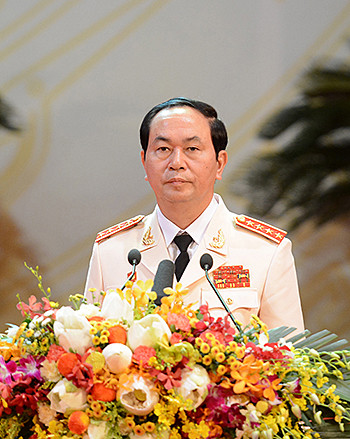 Thay mặt Đảng, Nhà nước, Chủ tịch nước Trương Tấn Sang đọc diễn văn, ôn lại chặng đường 70 năm xây dựng, chiến đấu và trưởng thành của lực lượng CAND.