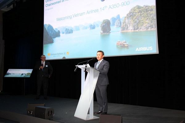 Ông Jean Francois Laval, Phó Tổng Giám đốc Airbus khu vực châu Á chúc mừng Vietnam Airlines chuẩn bị tiếp nhận và đưa vào khai thác chiếc máy bay A350-900 thứ 14. Lãnh đạo Airbus khẳng định rằng, hãng rất tự hào là nhà cung cấp những chiếc máy bay A350 cho Vietnam Airlines xây dựng nền tảng vững chắc để Hãng hàng không quốc gia Việt Nam vươn cao trên thị trường nội địa cũng như quốc tế.