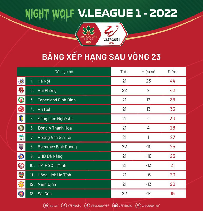 Hồng Lĩnh Hà Tĩnh có cùng 20 điểm như Nam Định (xếp trên nhờ chỉ số phụ), nhưng thầy trò HLV Nguyễn Thành Công vừa giành 1 điểm ngay trên sân ứng viên vô địch Hải Phòng ở vòng trước nên sẽ quyết tâm chiến thắng khi tiếp đón Hoàng Anh Gia Lai tại sân nhà.