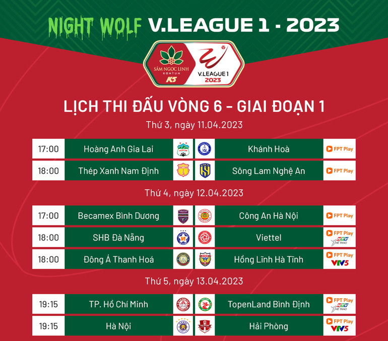 Những cuộc đụng độ nảy lửa đầy của V-League 2023 sẽ diễn ra ngay giữa tuần này. Đội nhất bảng hiện tại là Hà Nội sẽ chạm trán với Hải Phòng đang tạm xếp thứ sáu. Trong khi đó, Hoàng Anh Gia Lai tiếp đón Khánh Hòa trên sân nhà.