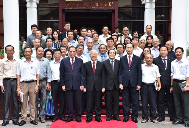 Tổng Bí thư Nguyễn Phú Trọng, Chủ tịch nước Trần Đại Quang với các đại biểu tham dự lễ kỷ niệm.