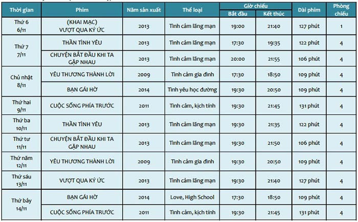 Sáu bộ phim bao gồm Bạn gái hờ (2014, đạo diễn Yakumo Saiji), Vượt qua ký ức (2013, đạo diễn Shinjo Takehiko), Chuyện bắt đầu khi ta gặp nhau (2013, đạo diễn Motoki Katsuhide), Yêu thương thành lời, (2009, đạo diễn Sono Sion), Thần Tình yêu!!! (2013, đạo diễn Kumazawa Naoto), Cuộc sống phía trước (2011, đạo diễn Zeze Takahisa). Phim Vượt qua ký ức được lựa chọn là phim chiếu đêm khai mạc LHP.