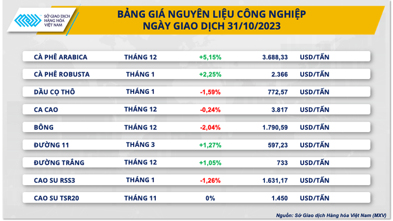 Trong khi đó, kết thúc ngày giao dịch cuối cùng của tháng 10, giá hai mặt hàng đường đồng loạt khởi sắc. Cụ thể, giá đường 11 cao hơn 1,27% và giá đường trắng tăng 1,05% so với tham chiếu. MXV cho biết lo ngại nguồn cung gián đoạn do điều kiện thời tiết là yếu tố chính hỗ trợ giá trong ngày hôm qua.