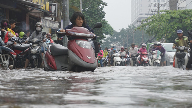 Cảnh úng ngập do triều cường trên đường phố TP Hồ Chí Minh.