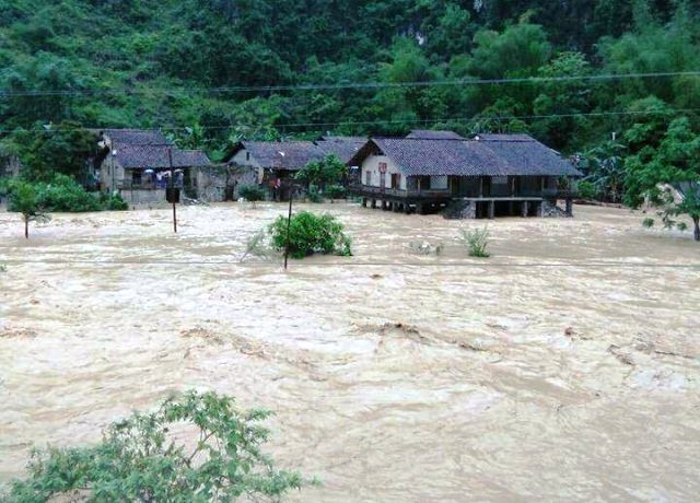 Làng đá Khuổi Ki (xã Đàm Thủy, huyện Trùng Khánh, tỉnh Cao Bằng) chìm trong nước lũ.
