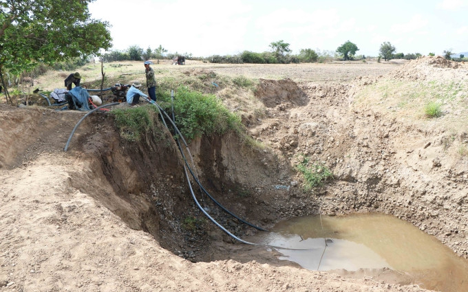 Nhiều tháng qua, bà con đã góp 200 nghìn đồng/hộ, thuê xe máy múc để đào ao tìm nguồn nước ngầm, đồng thời phải chi thêm từ 300 đến 450.000 đồng, mua dầu để chạy máy bơm hút nước tưới liên tục ba ngày, mới đủ nước cho hai sào lúa, với hy vọng cứu cánh phần nào, nhưng ruộng lúa bị chết khô ngày càng nhiều.
