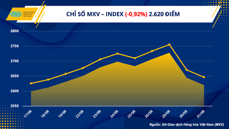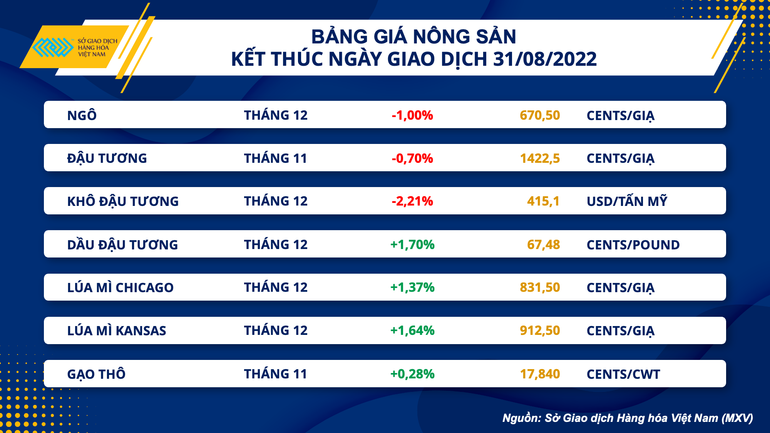 Năng lượng và kim loại vẫn là hai nhóm ghi nhận lực bán mạnh nhất, trong bối cảnh bức tranh vĩ mô đang tương đối tiêu cực. Giá dầu WTI hiện đã bật khỏi mốc 90 USD/thùng. Trong khi đó, các sản phẩm ngũ cốc và hạt lấy dầu trên Sở Chicago cho thấy diễn biến có phần trái chiều. Tuy nhiên, nông sản vẫn đón nhận dòng tiền đầu tư tăng mạnh trong phiên ngày 31/8. Giá trị giao dịch toàn Sở ghi nhận ở mức hơn 4.500 tỷ đồng.