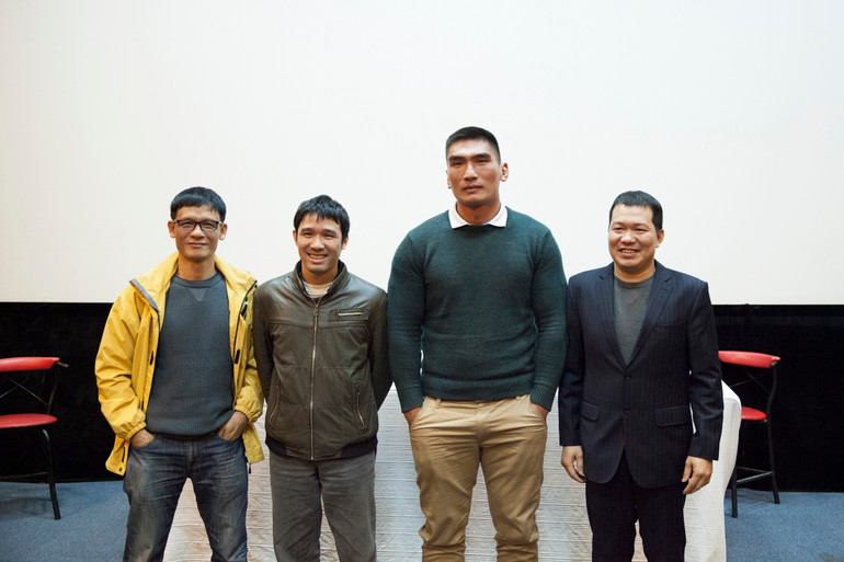 Từ trái qua phải: NSND Lý Thái Dũng, diễn viên Thế Quân, diễn viên Hà Văn Hiếu và đạo diễn Lương Đình Dũng tại buổi giới thiệu phim.