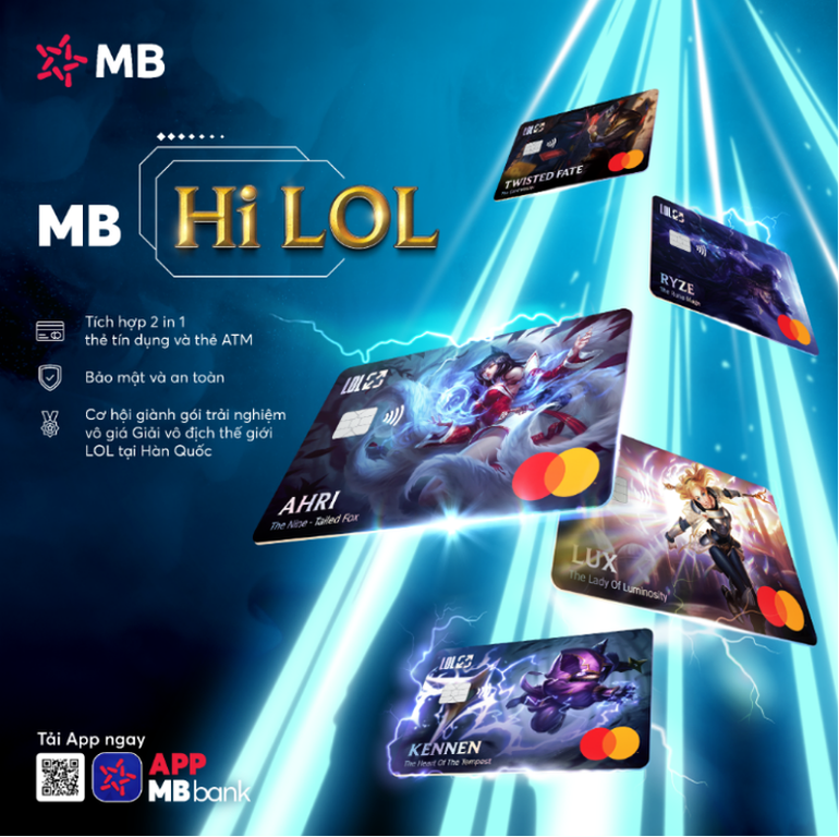 Gần đây, MB tiên phong trở thành ngân hàng Việt Nam đầu tiên cho ra mắt thẻ Mastercard - MB Hi LoL - dòng thẻ đầu tiên dành riêng cho khách đam mê, yêu thích Thể thao Điện tử (E-sport). Thẻ sở hữu các ưu đãi dành riêng cho các “game” thủ như: sử dụng thẻ có hình các vị tướng yêu thích, hoàn tiền lên đến 2.500 điểm RP...