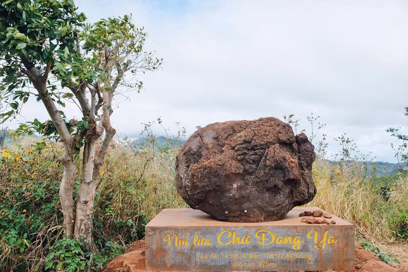 Tảng đá cột mốc tọa độ đỉnh núi lửa. Đây là khối nham thạch có niên đại hàng triệu năm tuổi, trọng lượng lên đến hai tấn, tìm thấy ở chính ngọn núi lửa này, đã được chính quyền và nhân dân làng Ia Gri đặt lên làm biểu tượng.