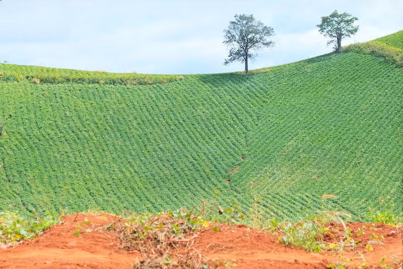 Những triền đồi của ngọn núi lửa lòng chảo, bên miệng chiếc "phễu" khổng lồ.