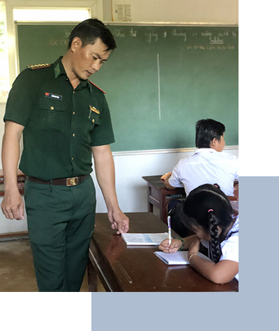 TBP: Phương pháp của tôi cũng đơn giản thôi. Tôi không thích rập khuôn trong sách giáo khoa. Nhiều bài trong đó các em không hiểu đâu. Tôi bảo các con cứ học theo thầy, sẽ dễ hiểu dễ nhớ hơn. Cho nên đem sách ra dạy thì các em không nắm được, mình biến thành các bài quen thuộc nơi đây thì các em mới hiểu. Quan trọng là các em có căn bản thôi. Đến khi vào đất liền các em cũng hiểu được. Nhiều em vào đất liền vẫn mang kết quả học tập ra khoe tôi, đó là niềm vui rất lớn.