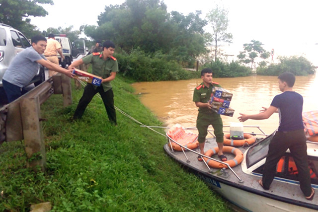 Lực lượng chức năng tỉnh Hà Tĩnh vận chuyển lương thực, nước uống hỗ trợ người dân vùng lũ