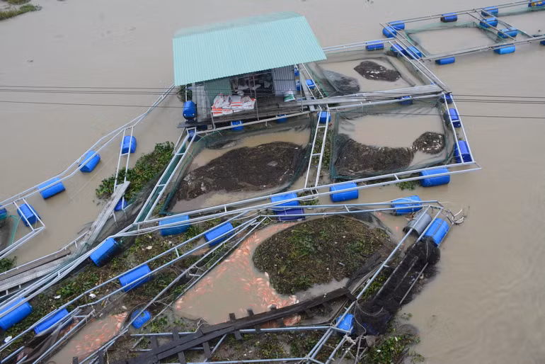 Mưa lớn làm nước lũ trên sông Bàn Thạch đoạn chảy qua thành phố Tam Kỳ (Quảng Nam) dâng cao, chảy xiết đã cuốn trôi hơn 40 lồng cá nuôi, với sản lượng khoảng 60 tấn cá, ước thiệt hại khoảng 3 tỷ đồng.