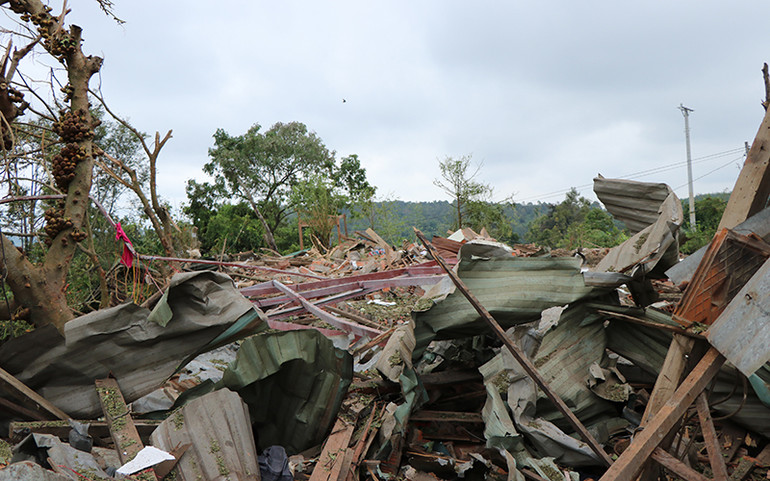 Hiện trường vụ nổ xảy ra tại một căn nhà cũ làm lán trại khai thác đá thuộc mỏ đá Thạch Lợi. Chủ mỏ đá là ông Thạch Kim Minh, thường trú tại TP. Buôn Ma Thuột, tỉnh Đắk Lắk. Ngoài thiệt hại về người, vụ nổ còn phá hủy một căn nhà gỗ, tường xây với quy mô ba gian và toàn bộ đồ dùng bên trong.