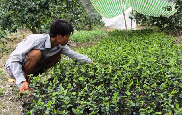 Người dân ươm hạt mãng cầu để trồng và bán với giá 5 nghìn đồng/cây.
