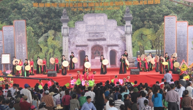 Hát quan họ tại lễ hội chùa Bổ Đà 2018.