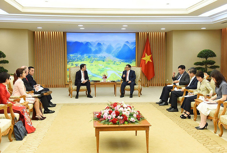 Thông tin tới Chủ tịch Robert Ford về chủ trương, chính sách của Chính phủ, Thủ tướng cho biết, Việt Nam nhất quán phát triển nhanh, bền vững dựa chủ yếu trên khoa học-công nghệ, đổi mới sáng tạo và chuyển đổi số; xây dựng môi trường kinh doanh công bằng, minh bạch, ổn định, giải quyết thủ tục hành chính hiệu quả.