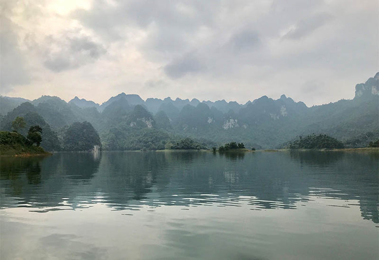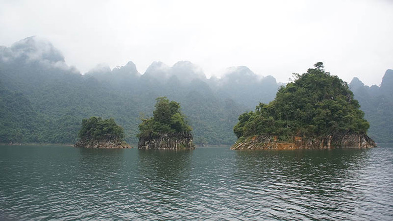 Cũng ở đó, tôi như bắt gặp hình ảnh những đảo đá vôi của di sản thiên nhiên Hạ Long khi thuyền đi qua các đảo nổi, cột đá tự nhiên giữa mặt hồ. Tuy nhiên, dù đã tham quan vịnh Hạ Long trên dưới chục lần, tôi mới chỉ được ngắm các đảo đá ẩn hiện trong sương, chứ chưa từng chiêm ngưỡng cảnh mây ôm núi trữ tình như đã thấy ở hồ Na Hang – Lâm Bình.