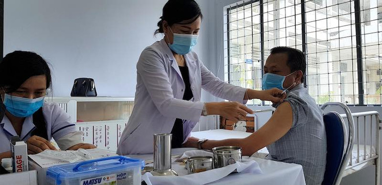 Tiêm vaccine tại Trung tâm kiểm soát bệnh tật tỉnh Cà Mau.