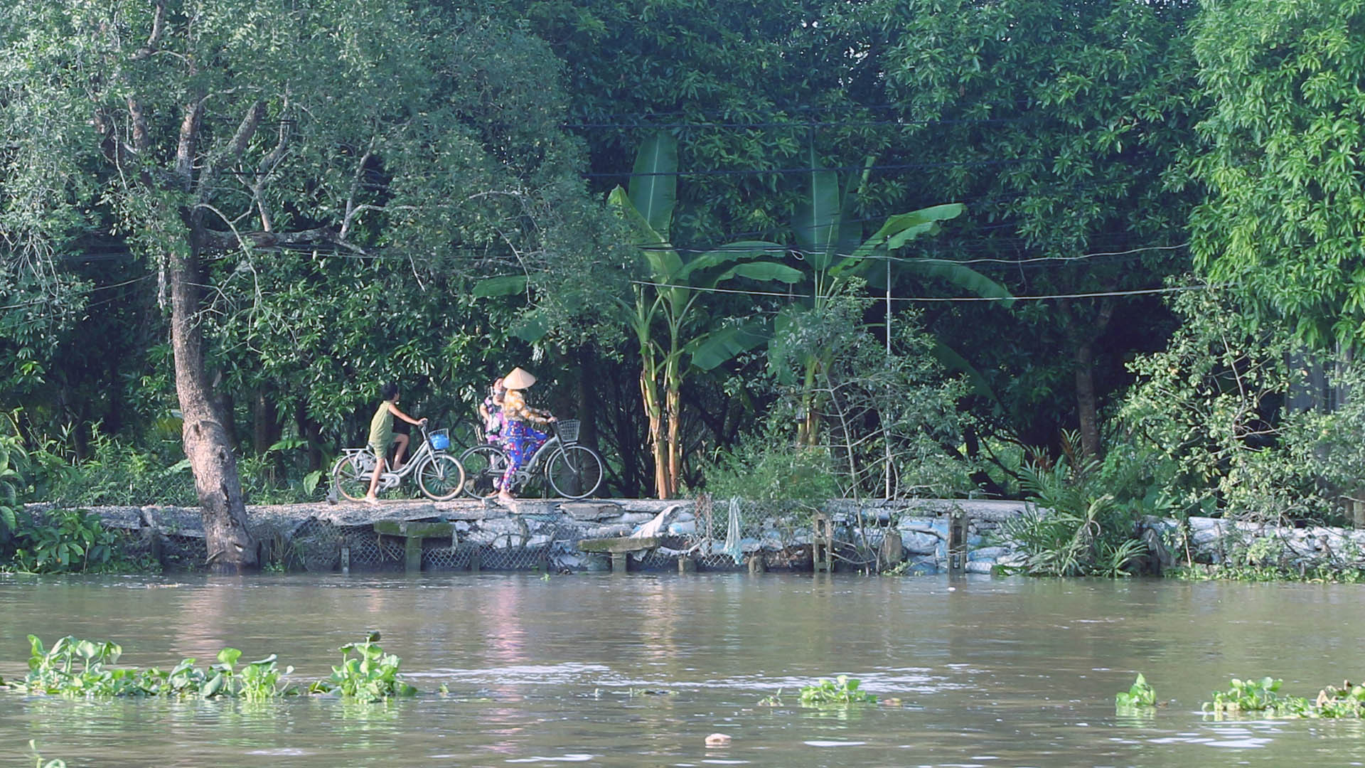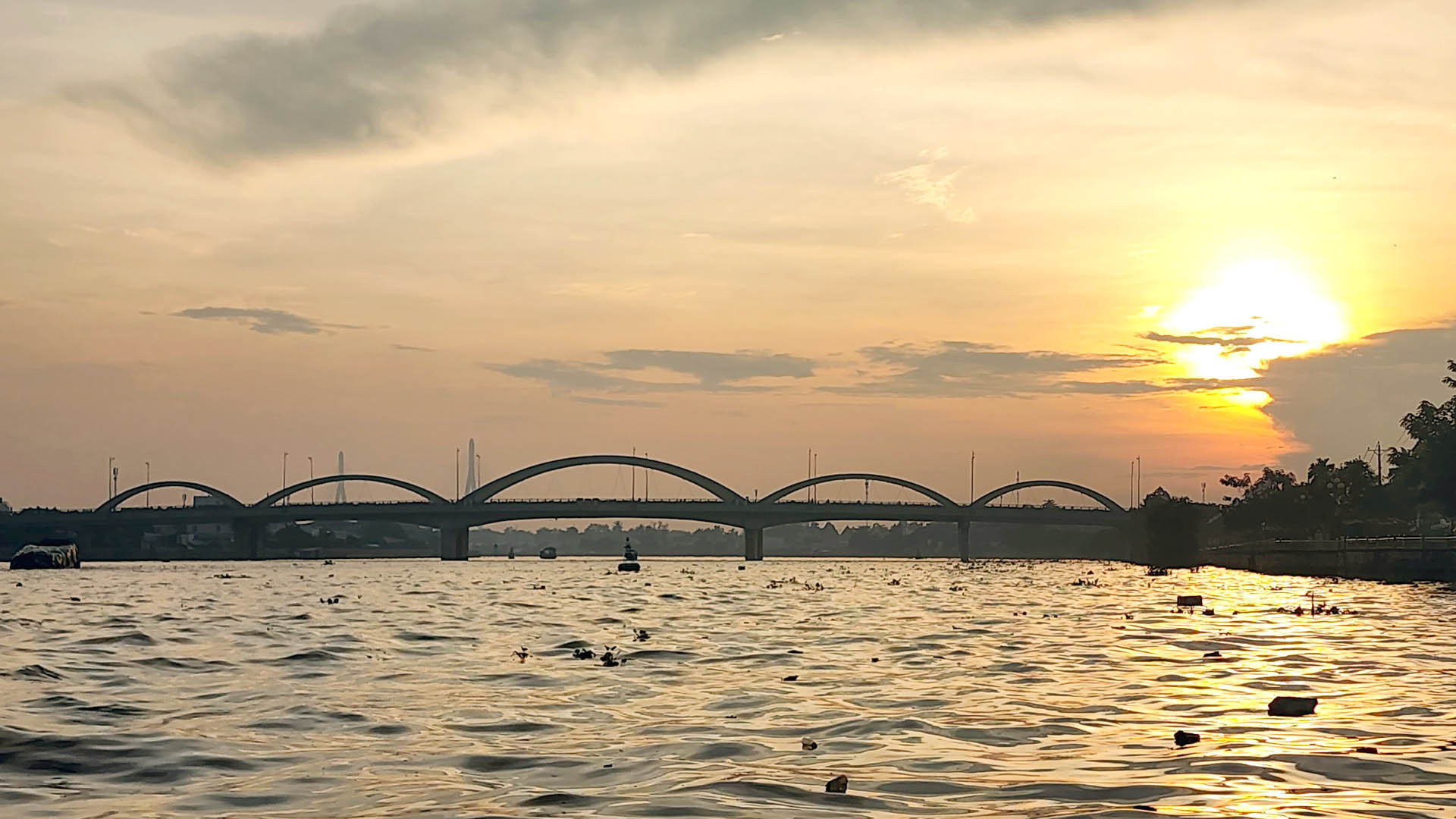 Đứng trên tầng hai của chuyến phà số hiệu C-60, gió sông Tiền lồng lộng, từng đám lục bình trôi theo con nước ròng. Chợt nhớ câu thơ ai đó: “Tháp Mười nước mặn đồng chua/ Nửa mùa nắng cháy nửa mùa nước dâng”.