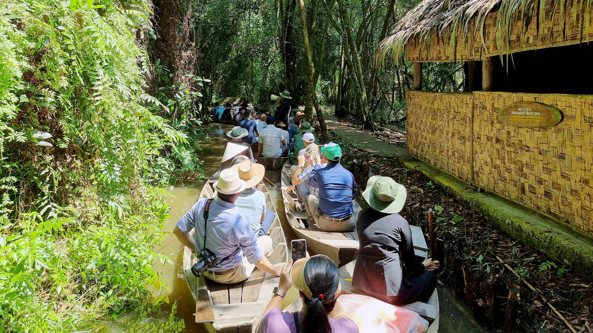 Mùa nước lên, những con kênh ở Khu di tích Xẻo Quýt cũng cao hơn. Chúng tôi đi xuồng lau lách dưới tán rừng tràm nguyên sinh, trải nghiệm vùng “di tích đỏ” ở xứ sen hồng.