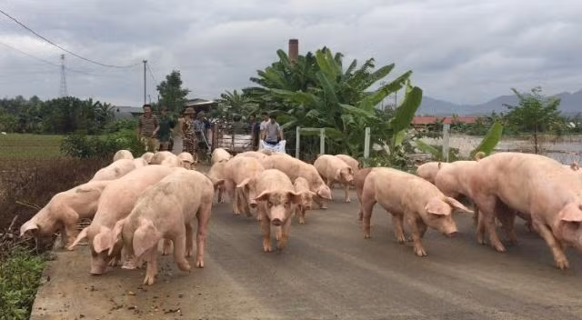 Người dân di chuyển gia súc, gia cầm đến nơi an toàn.