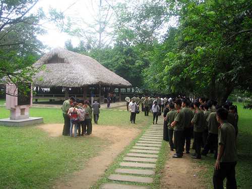 Những ngày này, hàng chục đoàn khách từ các nơi đổ về thăm đình Tân Trào. Ảnh:CAO NĂM