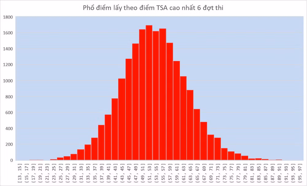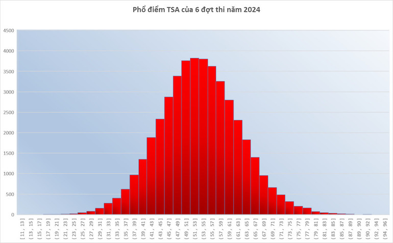Kết quả, qua 6 đợt Đánh giá tư duy năm 2024, điểm thí sinh đạt cao nhất là 96,43. Điểm trung bình của các thí sinh là 53,1.