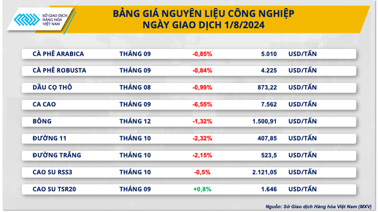 Bên cạnh đó, giá hai mặt hàng cà phê cũng giảm lần lượt 0,85% với Arabica và 0,84% với Robusta do tỷ giá USD/BRL tăng, hoạt động xuất khẩu cà phê của Brazil tích cực hơn so với năm ngoái, đồng thời tồn kho cà phê tại châu Âu đã phục hồi.