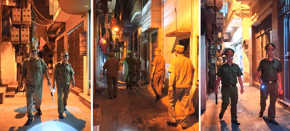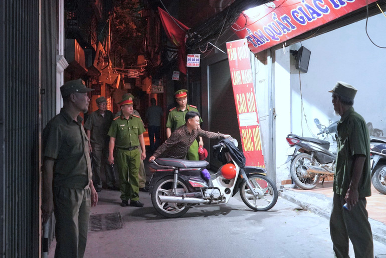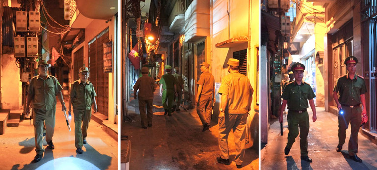 22 giờ đêm, khi các gia đình đóng cửa đi nghỉ, lực lượng Cảnh sát khu vực và tổ Bảo vệ dân phố của tổ dân phố 10, phường Giảng Võ, quận Ba Đình bắt đầu hoạt động tuần tra khu vực dân cư.