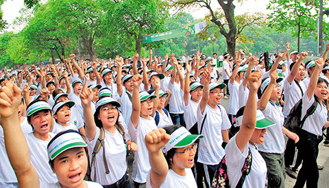 Tuổi trẻ Thủ đô đi bộ hưởng ứng Ngày Môi trường thế giới. Ảnh: Trần Hải